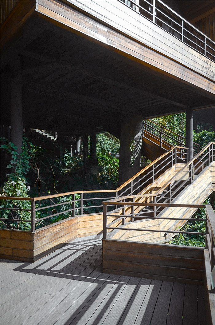 樹屋的體驗(yàn)是從“爬樹”開始的,因此酒店設(shè)計(jì)師對(duì)室外路徑和室外體驗(yàn)格外重視——迴轉(zhuǎn)登高的路徑猶如“攀爬”,不同高度的室外露臺(tái)猶如可以停歇的“樹杈”,而居室相當(dāng)于樹上的“果子”。