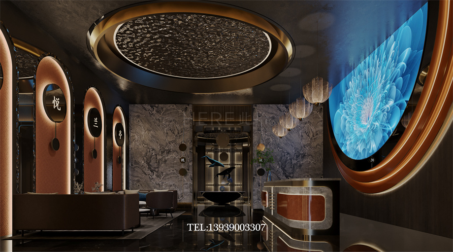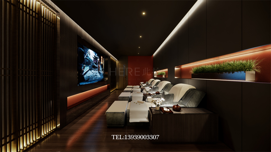 整體湯泉足道會所設(shè)計(jì)以現(xiàn)代輕奢融合東方美學(xué),以幽暗色調(diào)打造私密體驗(yàn)。